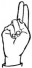 На ћирилици написано ДАНИЛО БОНДЕРОВИЋ састоји се из 16 слова [?]. Исписано ћириличном једноручном азбуком за глувонеме: